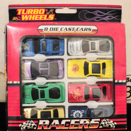 The Turbo Wheels line offers inexpensive 1:64 scale die-cast cars sold in multi-packs at dollar stores, delivering toy-car fun at ultra-budget prices.